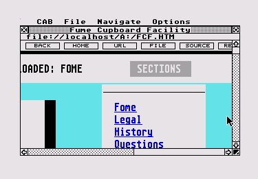 | Fume Cupboard facility, and its amazing ability to render on the circa-1995 Atari ST browser, known as CAB! The fact that it took over _15 minutes_ to finish _rendering_ (not downloading) the page on the 8MHz 68000 is a moot point =P | |||